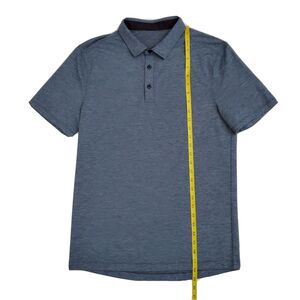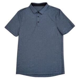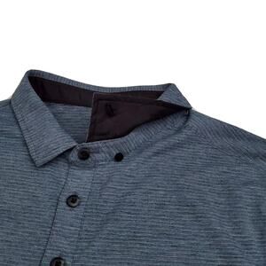Lululemon (Mens Medium) Gray Striped Short Sleeve Stretch Button Polo Golf Shirt