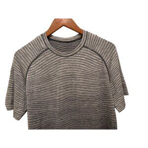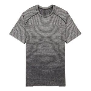 Lululemon Mens Metal Vent Tech Short Sleeve Shirt Gray/Black Ombre Stripe Lightw