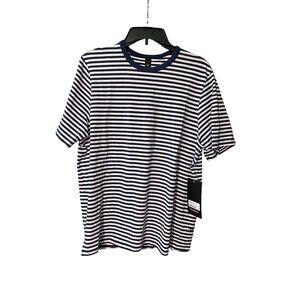 Lululemon Mens Organic Cotton Classic-Fit T-Shirt Blue & White Bold Stripe