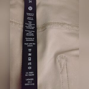 Upgrade your everyday style with these Lululemon men’s pants in a versatile beige/tan shade. Designed in Vancouver and crafted from a stretchy, wrinkle-resistant blend of 53% elastomultiester and 47% recycled polyester, these pants combine performance with polish.