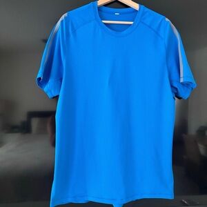 Lululemon Mens Short Sleeve Athletic Shirt Zip Back Pocket Blue Size Medium