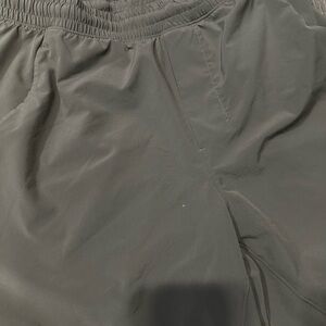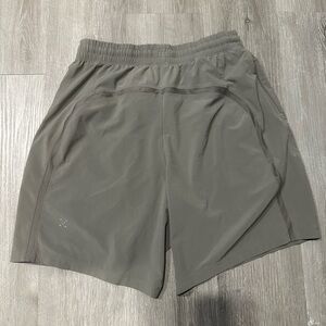 grayish green, athletic shorts, moisture-wicking, stretchy, gym wear, casual, lightweight, sporty, minimal design, men's activewear