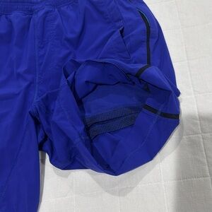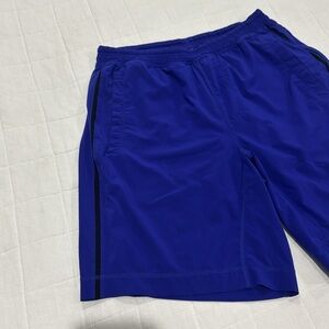 Very nice men’s lined shorts in great condition. No size tag. Looks like size L. Waist is about 13.5 inches plus stretch, length is about 19 inches, and inseam is about 8.5 inches. The color is a little bit different than pictures show (more purplish).