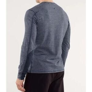 Lululemon Men’s Speed long sleeve stripe Heather black iris blue v-neck Large