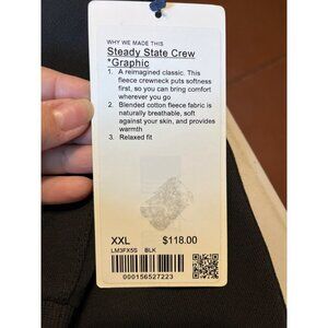 Lululemon Mens Steady State Crew Sweatshirt XXL Black Fleece Athletic Graphic