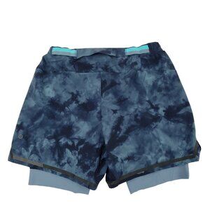 Lululemon Men's Surge Bold Lines Spray Dye Shorts Size Large Running Beach Blue