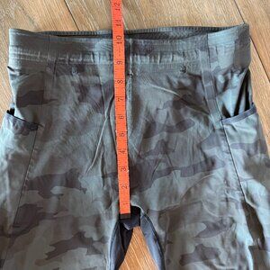The Lululemon Men's Surge Light Tight Tiger Camo leggings in size medium are perfect for athletic activities like running and jogging. Made from a blended fabric of nylon, these compression leggings feature an elastic waist and pockets for convenience. The camouflage pattern and moisture-wicking material make them ideal for outdoor workouts in winter, fall, or spring. Machine washable and designed for a comfortable fit, these leggings from the reputable brand Lululemon are a must-have for any active man's wardrobe.