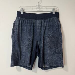 Lululemon Men's THE Short Active Gym Workout Blue Pattern Lined Large 9"