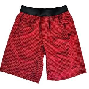 Lululemon Men's T.H.E. Shorts Red Check Size Medium Unlined 10" Inseam Run Gym