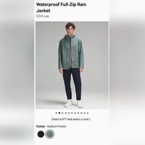 Lululemon Men’s Waterproof Full-Zip Rain Jacket-Medium Forest Green/Small