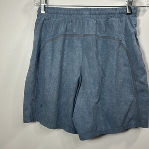 Lululemon men’s light blue lined athletic shorts size medium. Good condition. Does have a stain on the right inside pocket as shown in pic. Inseam is 7” and rise is 10.5”. Laying flat waist is 13.5”