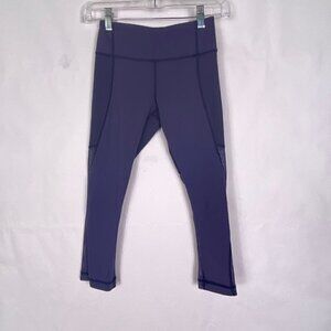 Lululemon Breathe Easy Crop in Cadet Blue. Cottony-soft Full-On Luon fabric. Tight fit.