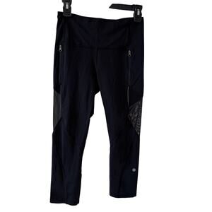 Lululemon Mesh Panel Cropped Leggings Black Zip Pockets Size 6 EUC