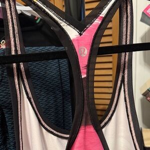 Elevate your workout with this stylish women's top featuring a vibrant pink and black design.