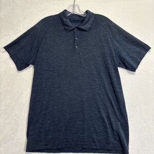 Lululemon Metal Vent Tech Polo Shirt Mens Large Blue Breathable Stretch Golf Gym