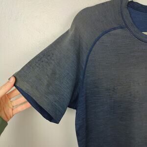 Lululemon Metal Vent Tech Tee Mens Medium Blue Heather Performance Mesh FLAWS