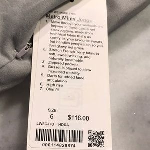 Lululemon Metro Miles Joggers Size 6 Lt Grey NWT