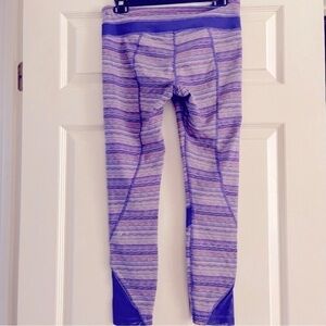 Lululemon Mid Rise Athletic Performance Leggings Stripes Purple Lavender Size 8