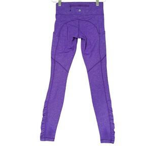 Lululemon Mid Rise Leggings Women's 4 Purple Striped Stretch Activewear Yoga