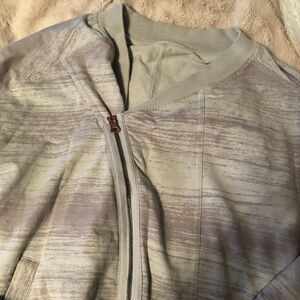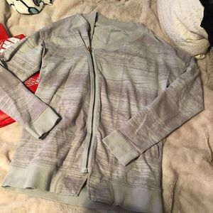 Like new Lululemon Mula Bundle Wrap in Righteous Stripe Silver Spoon / Silver Spoon. Size 2. Open over tights and a tank or all wrapped up for extra warmth, it's easy to wear when we're on the go.
