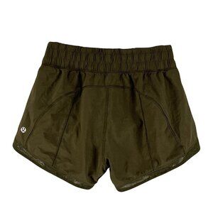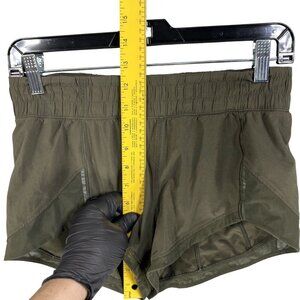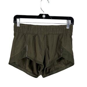 Lululemon Miles Ahead Womens 4 Olive Green Running Shorts Athleisure Gym Athlete Sporty Workout Fitness