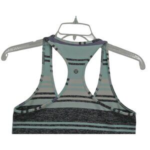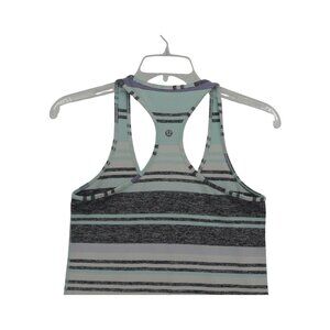 Lululemon Mint & Gray Striped Racerback Tank – Built‑In Shelf Bra (4–6)