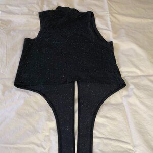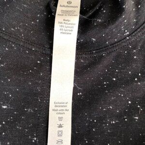 Black with gray speckles. The ties wrap around your waist and knot in the back. The polyester/lycra fabric is four-way stretch, sweat-wicking, and quick-drying. Pristine condition.