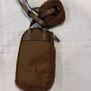 Stylish brown fuzzy phone crossbody bag.Perfect for casual outings.