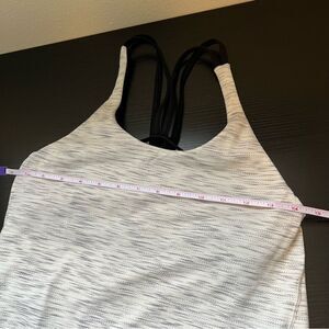 Lululemon women’s Moment to Movement gray and black 2 in 1 bra and tank top. No padding, but has spots to add your own.
