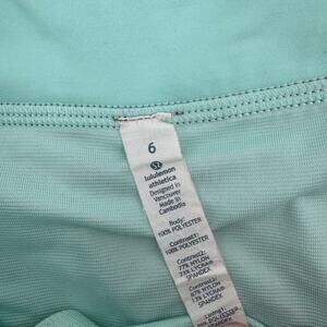 Lululemon multicolor Run Speed shorts, women's size 6, feature lightweight sweat-wicking two-way stretch fabric. These have built in briefs with a smooth waistband with LYCRA® that ensures comfort, while split legs and back vents allow for breathability. Includes a back zipper pocket, two waistband pouches, and chafe-resistant seams. Ideal for active wear.