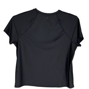 Lululemon shirt black t-shirt nylon top short sleeve athletic shirt stretchy fabric casual wear Vancouver design womens top S size elastane blend everyday wear activewear