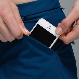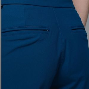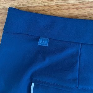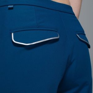 Lululemon Long Story Short in Poseidon--like a Teal Blue. I had these in all 3 colors but didn't wear this pair. They're super flattering though & comfortable. I removed the inside tag, but they're a size 6. Waist flat across is about 14"; the rise is roughly about 10"; and the inseam is roughly about 8".
