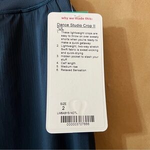 Lululemon NWT Dance Studio Crop II (Unlined 20") Pants Nocturnal Teal Size 2