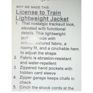 Brand new with tags Lululemon License to Train Lightweight Jacket. Designed for performance and movement with a breathable, lightweight feel. Features a full zip design with stretch for comfort during training, running, or everyday wear. Moisture wicking and quick dry fabric help keep you comfortable, while wind and water resistance add versatility. Includes secure zippered pockets and an athletic fit that allows room through the shoulders without feeling bulky.