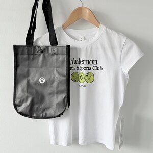 Lululemon Organic Cotton Baby Tee with the "Tennis & Sports Club" graphic