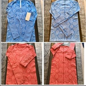 LULULEMON RUN: NWT RARE Heathered Pipe Dream Blue *SE and Heathered Cranberry *SE Swiftly Tech LS Crew Tops, size 8.