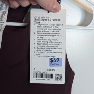Lululemon NWT Swift Speed Cropped Tank Longline Sports Bra - Goodnight Plum sz 0