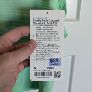 Lululemon NWT Swiftly Tech Cropped Racerback Tank 2.0 - Citra Lime Green sz 14