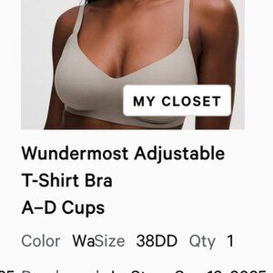 Lululemon NWT Wundermost Adjustable T-Shirt Bra 38DD
