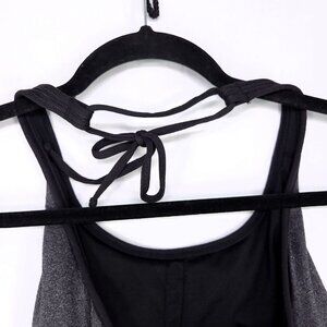 Lululemon Namaste Halter Tank Top Size 6 Ruched Black Gray Color Block