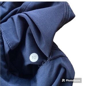 Fully lined navy blue Lululemon pants size 10, two front and two back pockets with zippers, 25 inseam, drawstring waistband