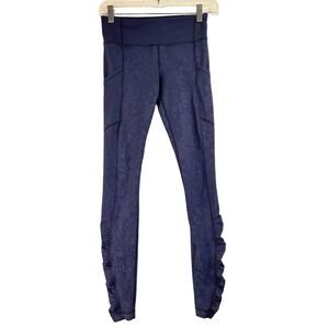 Lululemon Navy Blue Paisley Ruched Speed Lux Tights Leggings Size 4