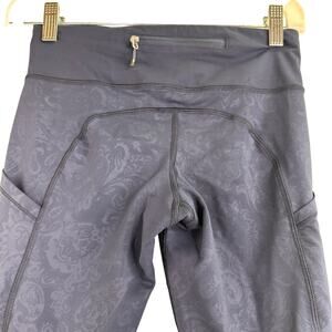 Lululemon Navy Blue Paisley Ruched Speed Tights Leggings Size 4