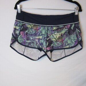 Lululemon Navy Blue Speed Shorts Women 6 Watercolor Pattern Athletic Gym Workout