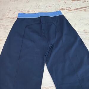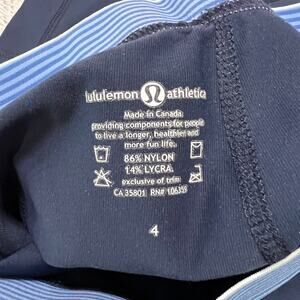 Lululemon cropped wide-leg pant, size 4, navy pull-on, striped waistband, high-rise culotte, performance stretch