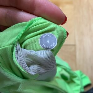 Lululemon neon green keyhole open back Swank Tank top with shelf bra. Size 4. Good condition, some light wash wear.