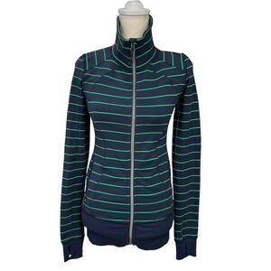 Lululemon Nice Asana Jacket Slalom Stripe Inkwell Green and Navy Size 6