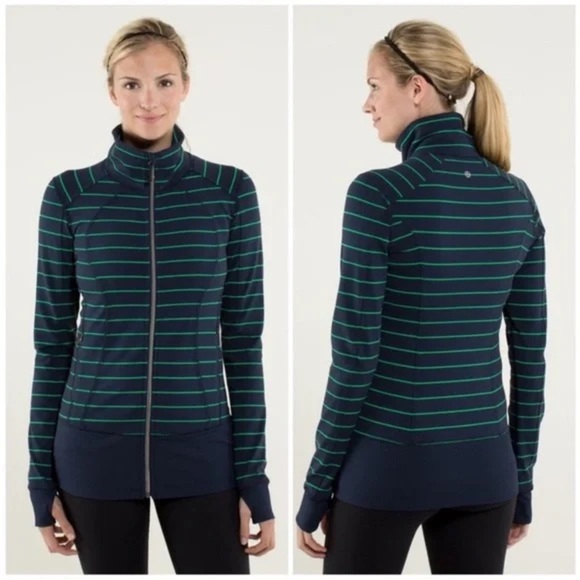 Lululemon Nice Asana Jacket in Shalom Stripe/Inkwell Pockets Zipper Yoga Size 12
