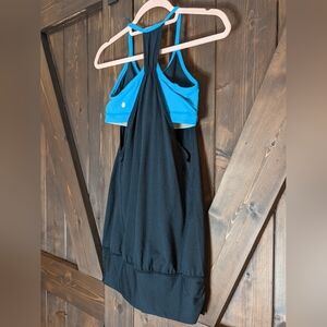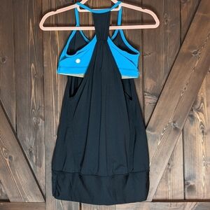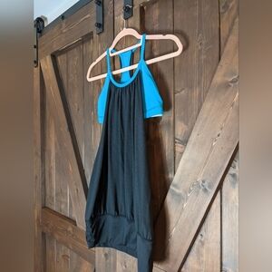 Description: Black Tank Top with Blue built in bra. Good preowned condition. Some pilling.