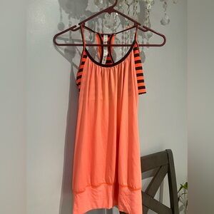 Lululemon No Limits Activewear Tank Bra Cut Out Orange Navy Stripes size 8